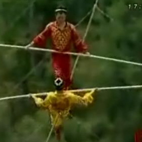Bir ipin üstüne çıktın **oynamaya